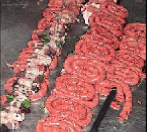 La prima volta che capitai a Sammichele era l’anno 1989 in occasione di un viaggio di lavoro, assieme ad un collega molto pratico del sud ed amante della buona tavola, mi portò a cena in questo posto che, per i miei canoni di allora, aveva dell’incredibile. Fuori non c’erano insegne con scritto ristorante, bensì macelleria dove acquistammo un cartoccio di carne mista ed, una volta usciti, scendemmo 8/9 gradini per ritrovarci sotto il negozio in una stanza fatta a volta, con un camino che ardeva e delle tavole preparate. La tovaglia era in carta di paglia su delle panche in legno massello, consegnammo il cartoccio al cameriere il quale lo portò sul camino scoppiettante dove un addetto provvedeva alla cottura, mentre noi nell’attesa gustavamo ottime olive con il pane ed un generoso vino rosso. Allora fui testimone inconsapevole di un evento che avrebbe poi caratterizzato tutta la configurazione di un intero paese: la cottura alla brace quale elemento di distinzione, coesione di un’intera comunità. L’idea era nata da alcuni macellai che si inventarono un modo diverso per vendere la carne, altrimenti relegata alla cerchia degli abitanti, cioè di dare un valore aggiunto al prodotto offrendo al cliente la possibilità di scegliersi il pezzo e poi gustarlo comodamente seduto, una sorta di: dal produttore al consumatore. Da qui si sono organizzati attrezzando chi la cantina, chi il locale attiguo oppure di fronte con un bel braciere e delle panche, giusto il minimo indispensabile una sorta di spartana comodità per gustare una buona grigliata di carne.