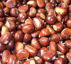 Caldarroste: Per cuocerle è indispensabile la classica padella di ferro con il fondo forato. Dopo aver strofinato le castagne con uno strofinaccio, inciderle con un coltellino nella parte bombata e disporle nel tegame in uno strato solo e lasciarle cucinare per circa 20 minuti. Passarle poi subito in uno strofinaccio per meglio sgusciarle. Si possono cuocere anche al forno molto caldo circa 200°C sempre con l’incisione nella parte bombata.